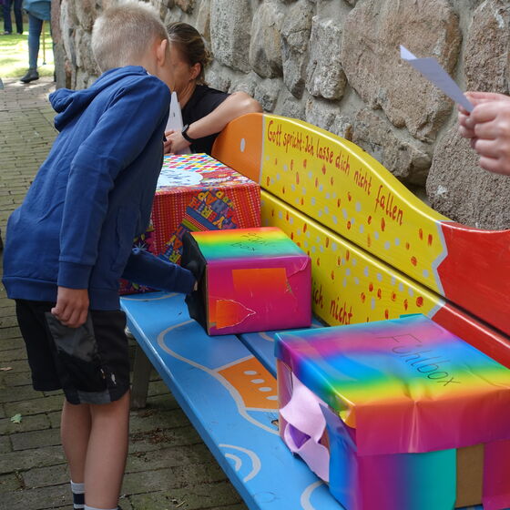 Am Sonntag, den 13. August, haben wir zusammen mit den Familien den Abschluss der Kindertage im Gottesdienst gefeiert. Selbst Filea ist nochmal vorbeigekommen, um sich zu verabschieden. Nach dem Gottesdienst gab es noch einige Spielstationen zu entdecken, ein Eis für alle und eine Schmink- und Glitzer Tattoo-Station. Vielen Dank an das Kindertage-Team 2023 und an alle Kinder für eine schöne Woche zusammen!